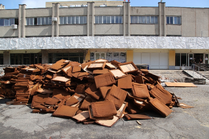 По его словам, все оборудование, освещение, мебель, находящиеся на первом этаже, хранятся сейчас в подсобных помещениях. До завершения ремонта ничто из этого выброшено не будет: в конце октября сотрудники ГДвК проведут ревизию имеющихся вещей. Что-то, возможно, будет полезно и в обновленном дворце, а остальное – либо будет распределено между другими подведомственными управлению культуры учреждениями, либо отправится на свалку. Что касается демонтированных окон и дверей, то уже известно, что их установят в культурно-досуговых центрах в Шилово и Подгорном, а гранитная и базальтовая плитка, убранная с входной группы, пока хранится на поддонах возле учреждения и, вероятнее всего, будет использована при обустройстве тематических локаций на прилегающей территории. На ней, кстати, планируют разбить парковую зону с сухими фонтанами, клумбами, различными арт-объектами.