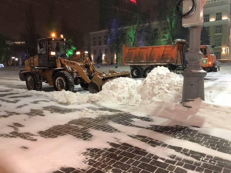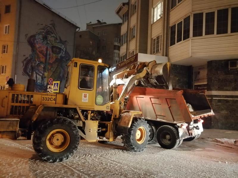 В правой части дорог сформированы валы под последующий массовый вывоз снега, который производится после окончания осадков. В ночь такая работа тоже производилась, к погрузке было привлечено больше 20 единиц погрузочной техники (лаповые и фронтальные погрузчики), а также самосвалы. Было вывезено больше 2300 кубометров снега. Всего на улицах города работало больше 150 единиц техники.