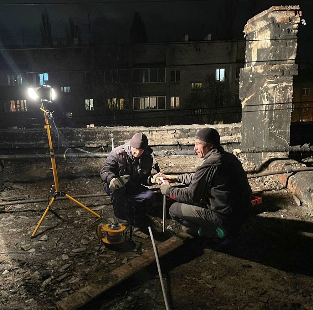 На текущий момент полностью демонтировали кровлю, завозят материалы для восстановления конструктива и перекрытия. Прошлой ночью в доме возобновили теплоснабжение, решили локальные проблемы, строители проводят регулировку внутридомовой системы после ремонта и запуска. Электроснабжение работоспособно во всём доме. Что касается верхних этажей, то квартиры там подключают по обращениям собственников и после проверки, просохли ли стены.