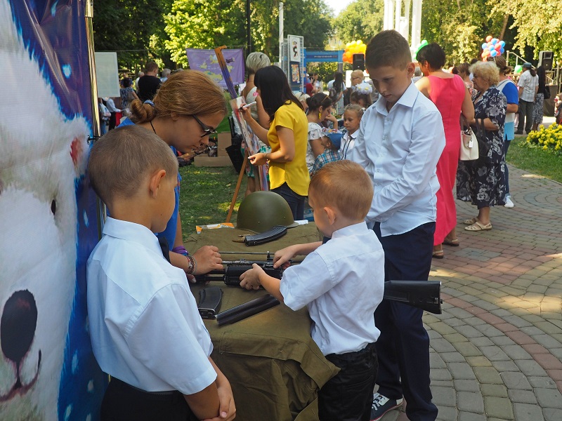 В день открытия, 1 сентября, прошедший под девизом «Город знаний», самой жаркой и веселой была площадка на Советской площади. Если у Дома офицеров были скромные песни девчонок в платьях цвета триколор, в парке «Орленок» – выставки детского творчества, у Центрального рынка – прыжки на батутах, в Петровском сквере – разговоры об английском языке, то на Советской площади были массовые танцы, художественный пленэр и уже ставшее классикой – бег через фонтан.