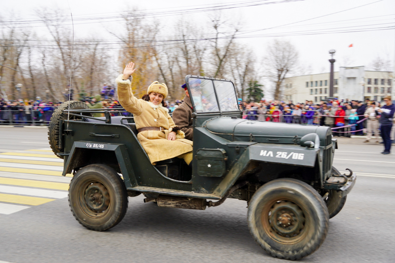 Они прошагали по Ленинскому проспекту, показав единение духа, а после по улице проехала техника времен Великой Отечественной войны. Это советский бронеавтомобиль БА-64, грузовик ЗИС-5, тяжелые мотоциклы М-72, армейские внедорожники ГАЗ-67 и «Виллис». В завершение парада воронежцы встречали легендарную советскую боевую машину реактивной артиллерии БМ-13 «Катюша». Со сцены сообщили, что первыми в бой отправились боевые машины, изготовленные на нашем заводе им. Коминтерна.