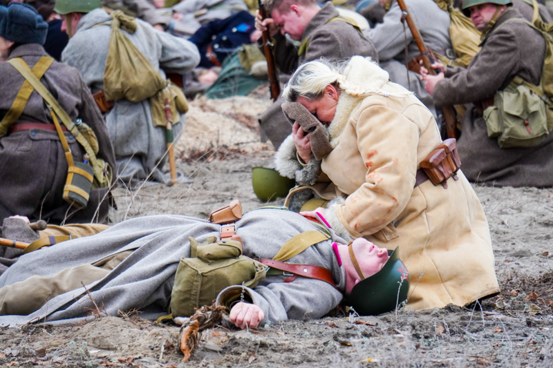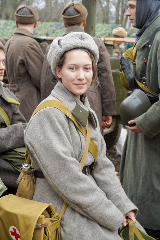 – Это моя одиннадцатая реконструкция, сегодня я представляю медико-санитарный батальон, – рассказала Анастасия Новикова. – Моя форма одежды допускает выход на поле в качестве бойца пехоты и снайпера, нужно только убрать сумку медсестры, взять саперную лопатку и оружие. У стрелков большая активность, а медики бегут уже после основного наступления. Но мне кажется, что важна здесь любая роль, случайных людей нет. Для меня это возможность донести до людей знание истории и патриотизм. Важно, чтобы дети чтили память своих прадедов и не забывали, какой ценой далась нам победа. А, к сожалению, забывают, поэтому нужны реконструкции – и сражений, и парадов.