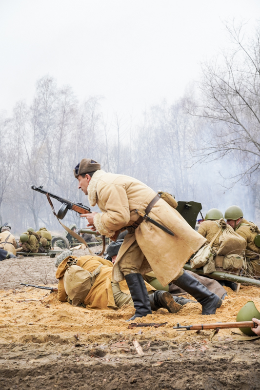 – Мы готовились к этому событию с конца лета, основная проблема заключалась в том, что трудно собрать людей по форме одежды и вооружению, – рассказал член координационного совета реконструкторов Воронежской области Андрей Фомин. – Сложности еще были со сбором гражданских людей, так как военный костюм собирают многие, а гражданский не так интересен. А в Воронеже около ста тысяч населения вышли на демонстрацию, это кроме войск. В 1941 году было длинное шествие. Это было единение вооруженных сил и народа. В Воронеже было налажено авиационное производство, потом появились «Катюши», несмотря на то, что город эвакуировали. Реконструкция призвана показать это единение армии и мирного населения. Я убежден, что Воронеж удержали поэтому.