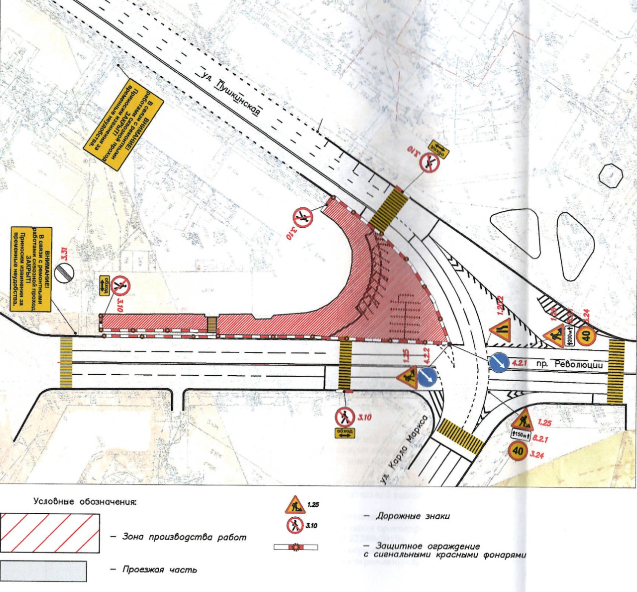 Это ограничение вызвано работами по благоустройству проспекта Революции.
