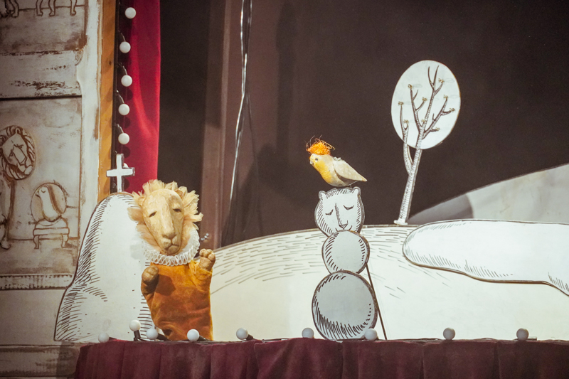 Гротескный мир балаганного уличного представления ожил на малой сцене Камерного театра в рамках восьмого детского театрального фестиваля «Маршак». Ученик Руслана Кудашова, режиссер Владислав Тутак представил спектакль «Лев и птичка» по мотивам книги Марианны Дюбюк.