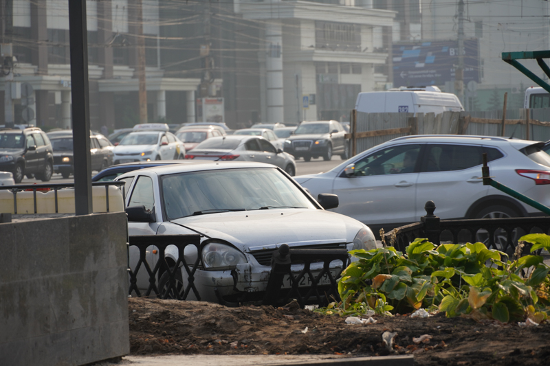 Судя по всему, водитель автомобиля «ДЭУ Нексиа» с чеченскими номерами попросту не справился с управлением на довольном сложном участке движения и врезался в чугунную ограду, отделяющую проезжую часть от газона.