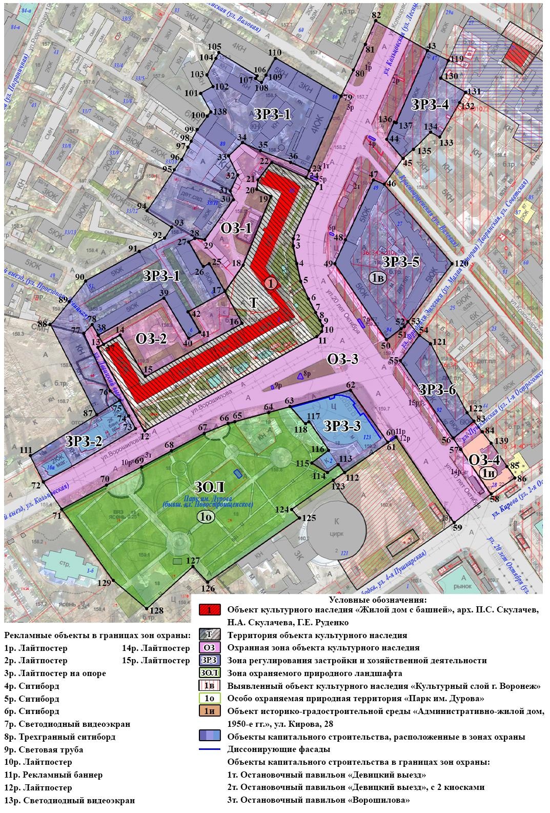Всего на территории города Воронежа расположено 359 объектов культурного наследия, зоны охраны утверждены для 255 из них.