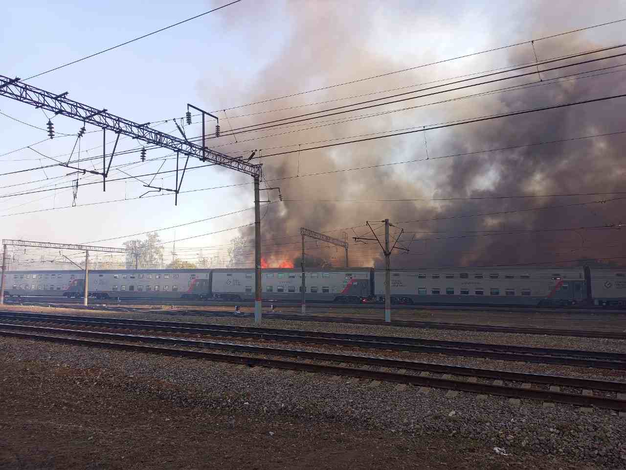 Предварительно известно, что горят две надворные постройки и полтора гектара сухой травы.