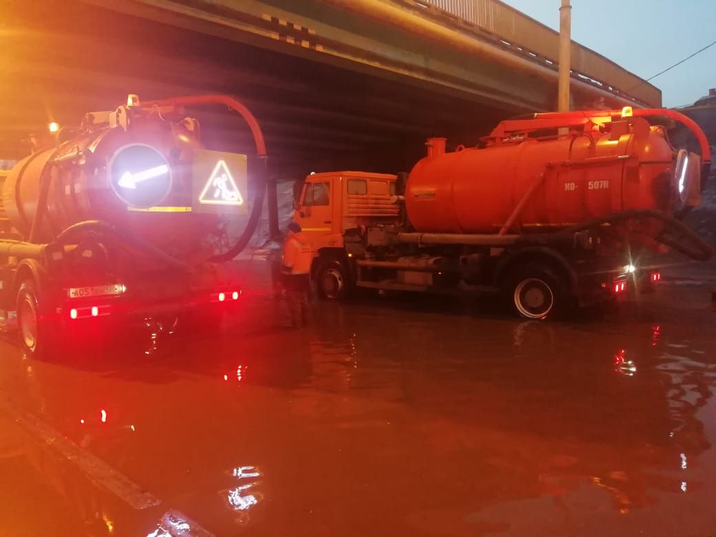 На время этих работ движение под мостом закрыто официально, а неофициально вода уже и так его перекрывает. В мэрии уточнили, что подтопления во всех подобных местах контролируют и ведут их постоянный мониторинг специалисты управы и управления дорожного хозяйства. Для ускорения отвода воды ведётся очистка решёток ливнеприёмников и применяется водооткачивающая техника – илососы.
