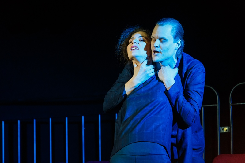 Никита Рак, перемещая спектакль из фойе театра на Малую сцену, решил сохранить его камерность. Зрителей в зале немного, они как будто подглядывают за соседями. Барбара и Вернер то «крушат» все на своем пути, в надежде друг друга безжалостно растоптать, то устало и спокойно присаживаются рядышком, вдруг осознав весь абсурд случившегося: семь лет под одним одеялом — и ни одного откровенного разговора.