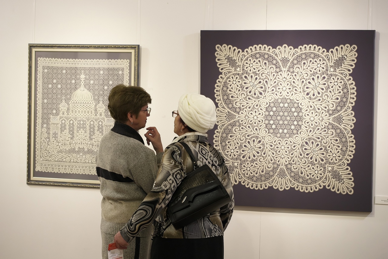Экспозиция собрала около 60 изделий профессиональных вологодских мастериц. Тут и детали женского костюма, и изысканный кружевной зонтик, и всевозможные скатерти и салфетки, и уникальные выставочные панно.