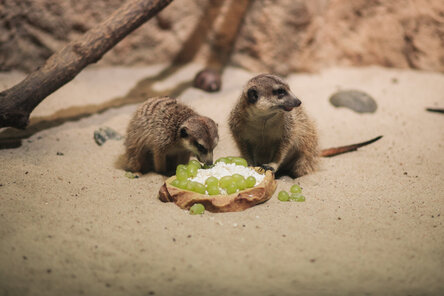 Маленькие сурикаты весом по 25–30 граммов находятся в вольере под постоянным присмотром шести старших сородичей во главе с самкой Солнце – она одна в стае имеет право приносить потомство. До 2-х месяцев малыши будут питаться молоком, потом их начнут прикармливать.