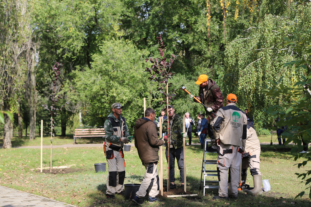 33 крупномерных саженца высадили сегодня, 21 сентября, в сквере Примирения и согласия в Советском районе Воронежа. Среди них – черемуха краснолистная и рябина гранатовая, сообщает пресс-служба городской администрации.