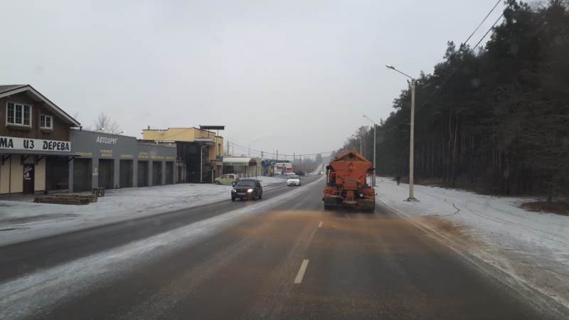 Основной упор сделан на посыпку маршрута № 1 от Остужевского кольца до микрорайона Репное. Посыпка проезжих частей осуществляется пескоразбрасывателями на базе КДМ, а тротуаров и зауженных участков – прицепными «пескачами» на базе МТЗ. Помимо этого, главными объектами посыпки являются путепроводы, мосты, остановочные карманы, пешеходные переходы и подходы к ним. Аналогичная работа проводится и на улично-дорожной сети микрорайонов Сомово, Репное и Краснолесный. Всего с начала зимнего периода комбинатом на посыпку израсходовано около 400 тонн пескосмеси.