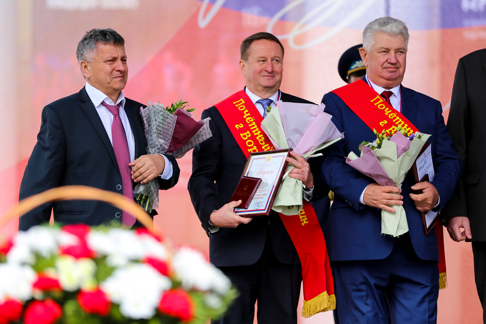 Ключевым событием торжественного открытия празднования Дня города стала церемония чествования Почетных граждан города. Удостоверения и знак из рук губернатора и главы города получили заведующий кардиохирургическим отделением БУЗ ВО «Воронежская областная клиническая больница № 1», руководитель кардиохирургического центра, доктор медицинских наук, профессор, Заслуженный врач Российской Федерации, главный сердечно-сосудистый хирург ЦФО, председатель попечительского Совета Храма во имя Преподобного Сергия Радонежского Воронежской митрополии РПЦ Сергей Ковалев, а также председатель попечительского совета театра кукол «Шут», член Совета руководителей органов местного самоуправления при Правительстве РФ, член правления Союза российских городов, вице-президент Ассоциации городов Юга России, член президиума Конгресса муниципальных образований РФ Александр Цапин.
