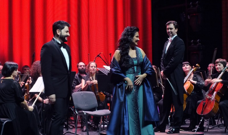 После антракта певица вышла на сцену в не менее восхитительном платье изумрудного цвета, которое несколько позже сменила на серебристое. Во время исполнения арий Анна заигрывала то с собственным мужем, то с Эльчином Азизовым, то с дирижером, которому даже подарила большой букет белых роз, выказав тем самым ему признание. Она танцевала с ними, словно на балу, смеялась, и от этого всего создавалась такая легкая атмосфера, что хотелось, чтобы концерт длился как можно дольше.