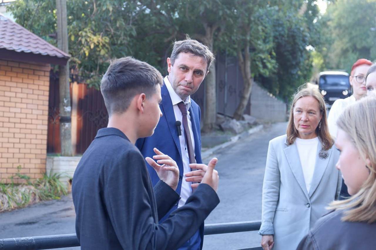 За час вчерашней, 9 сентября, прогулки успели многое с ребятами обсудить: можно ли стилизовать арку в жилом доме у ВГУ под морскую тематику, необходимость обновления навигации к городским достопримечательностям, возможность развития сквера Учёных и размещения в нём новых интересных композиций, поспорили даже, нужны ли куар-коды на объектах. Собеседники сошлись во мнении, что спуск по улице Декабристов нужно усовершенствовать, сделав шаги ступеней соразмерными и одинаковыми и, как вариант, в тематике воронежского кораблестроения. Также обсудили необходимость ремонта по улице Бехтерева.