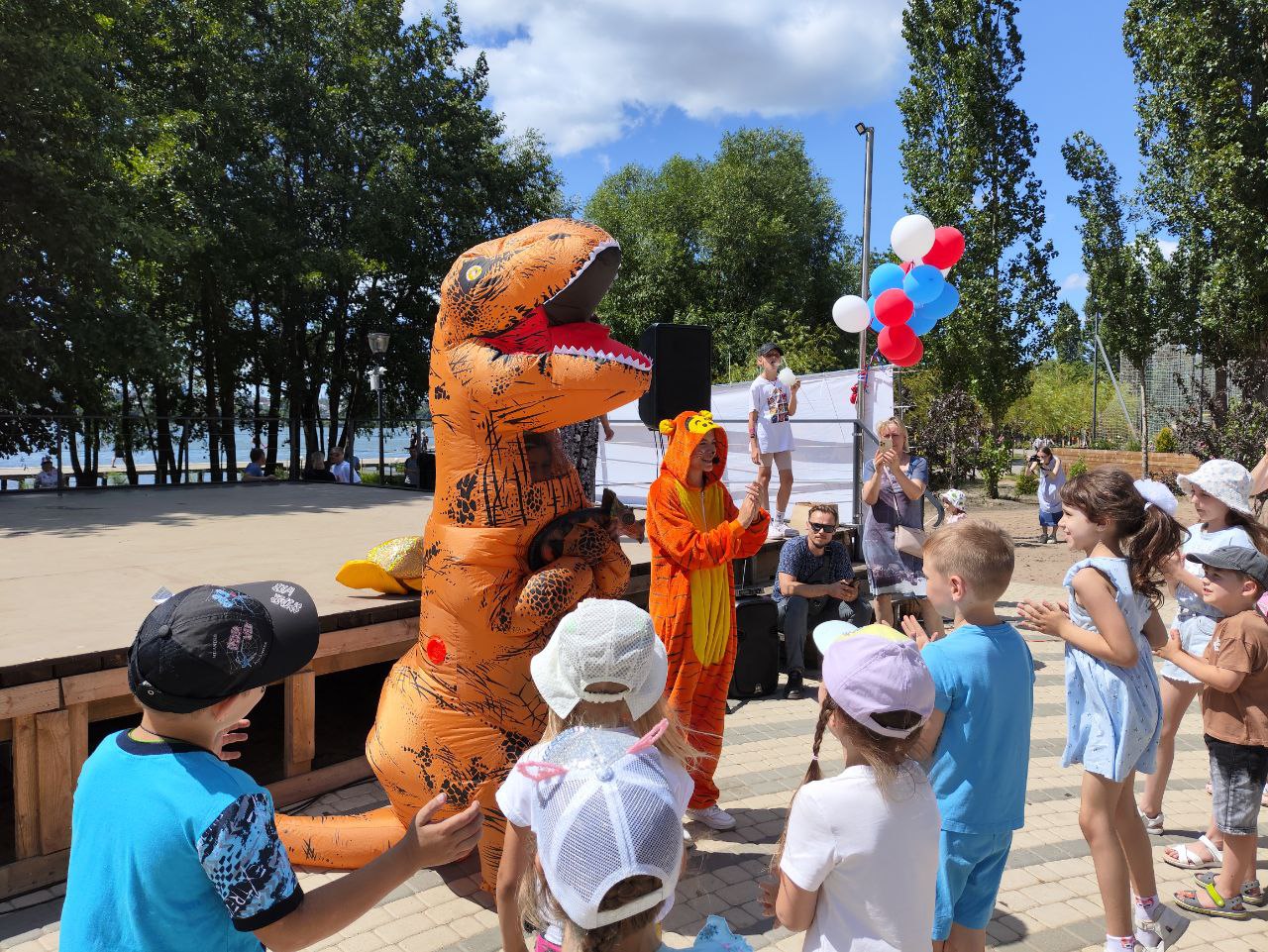 Многие семьи с детьми приняли участие в конкурсах, где пытались отгадать музыку из мультиков, отвечали на вопросы и соревновались в танцах и воображении. Все они получили подарки в виде складных копилок и брошек. В заключение праздника перед зрителями выступил театр «Грим Лис». Он представил постановку о динозавре, который потерял своего детеныша.