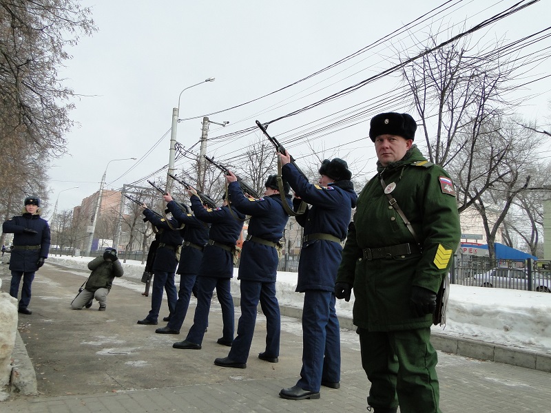 После возложения венков и цветов рота почетного караула произвела оружейный залп в честь погибших, военный оркестр исполнил Государственный Гимн РФ. А затем по аллее торжественным маршем прошли курсанты Военно-воздушной академии имени Жуковского и Гагарина.