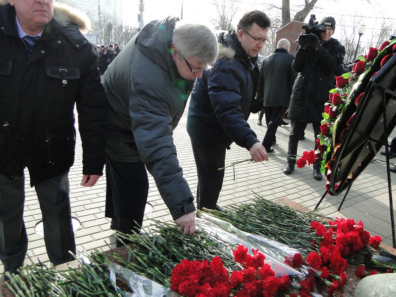 Под траурные звуки духового оркестра к памятнику были возложены венки, к ногам воина-интернационалиста участники памятного события клали красные гвоздики.