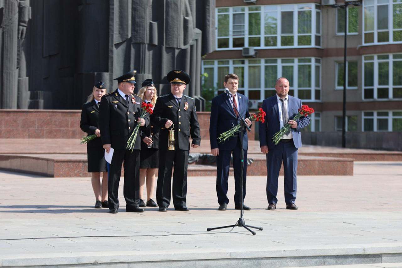 На площади Победы в столице Черноземья прошла торжественная церемония передачи символического пламени, в которой участвовали директор Центрального филиала ведомственной охраны Минтранса РФ Виталий Пехота, заместитель министра промышленности и транспорта Воронежской области Евгений Скиданов, первый заместитель главы администрации Воронежа по городскому хозяйству Алексей Рыженин, представители патриотических организаций и другие лица.
