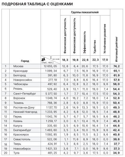 При составлении рейтинга учитывались физическая и финансовая доступность, удобство, эффективность, устойчивое развитие. Также в исследовании были изучены механизмы взимания платы и темпы внедрения платных парковочных пространств в центральных частях городов численностью населения свыше 200 тыс. человек.