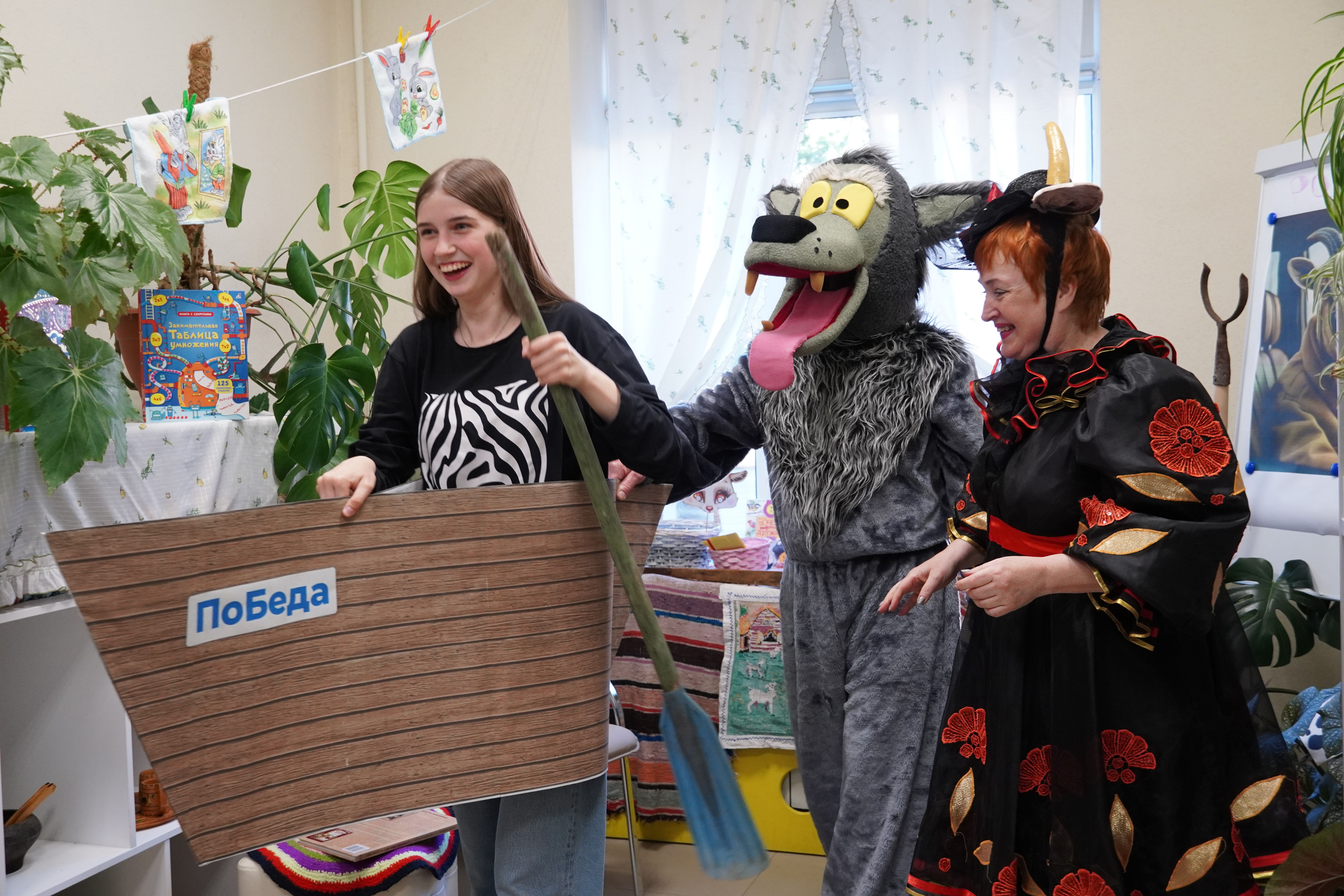 А вот локация «Коза Ностра», посвященная сказке «Волк и семеро козлят» во главе с заведующей библиотекой №4 им. Исаева Елены Меркуловой (роль Козы) и волонтера Евгения Кузьмина (Волк) запомнилась ребусами и загадками. Здесь предлагали поплавать на лодке и решить математические задачи, знакомили с предметами быта из русских народных сказок, угадывали следы лесных животных. Тут же внимание к себе привлекал портрет козла за рулем автомобиля – опять же созданный нейросетью. Оказалось, что это отец семерых козлят, работающий дальнобойщиком. Вот так увидел его искусственный интеллект.