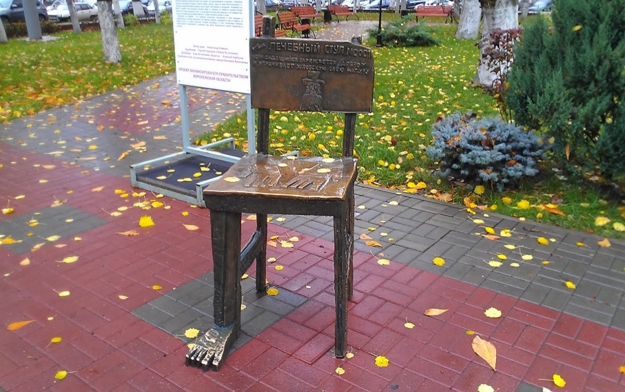 Лечебный стул № 0001, избавляющий от жлобства, установлен в сквере возле областного правительства (пл. Ленина, 1). Если прикоснуться к стулу ладонями, то от жлобства можно избавиться только частично. Чтобы полностью освободиться от нелицеприятной черты характера, на стуле нужно посидеть. Последнее время посещение памятника стало популярным среди молодоженов – невесты усаживают на стул жениха, чтобы тот не «нычил» деньги и тратил все на семью.