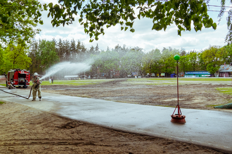 Заместитель начальника отдела обучения и организации обеспечения первичных мер пожарной безопасности управления по делам ГО ЧС Сергей Марчуков оценил работу ребят в конкурсе «Комбинированная пожарная эстафета». Участникам предстояло в амуниции пожарных подсоединить пожарные рукава и сбить струей воды мячик.