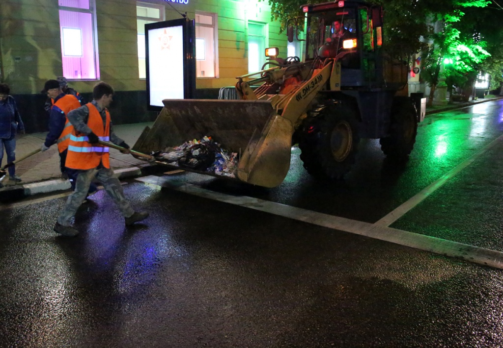 В мэрии сообщили, что к четырем часам утра 10 мая была завершена уборка Адмиралтейской и Советской площадей, на Чернавском мосту и дамбе, Петровской набережной, площадях Ленина и Победы, улицах Плехановской, Кирова, Карла Маркса, Пушкинской, Кардашова и других.