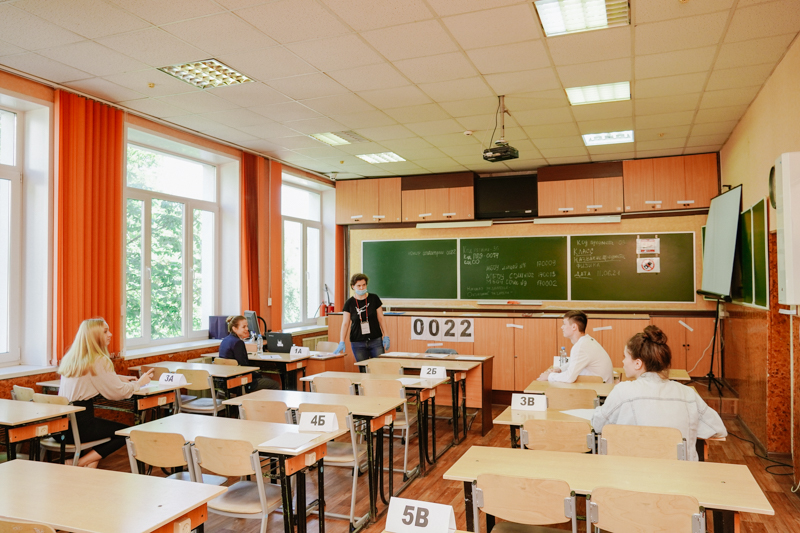 Гимназия имени Басова принимала в «день физики» 126 ребят из восьми школ. На входе их проинформировали о необходимости соблюдать социальную дистанцию. В аудитории приглашали по трое по заранее составленным спискам. Чтобы развести потоки выпускников, работали два входа.