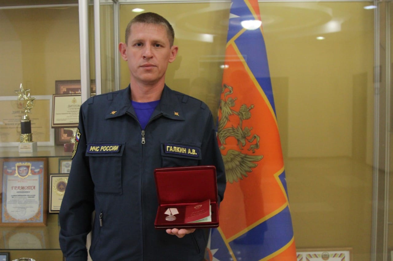 А начальник караула пожарно-спасательной части № 41 Андрей Галкин награжден медалью «За спасение погибавших». Причиной его награждения стал вполне конкретный случай: Галкин лично спас двух человек, провалившихся под лед в ноябре 2019 года. Тогда в селе Каширское два человека тонули в пруду, а Галкин, обвязавшись веревкой, прополз по льду 30 метров, вытащил одного, а затем и второго.