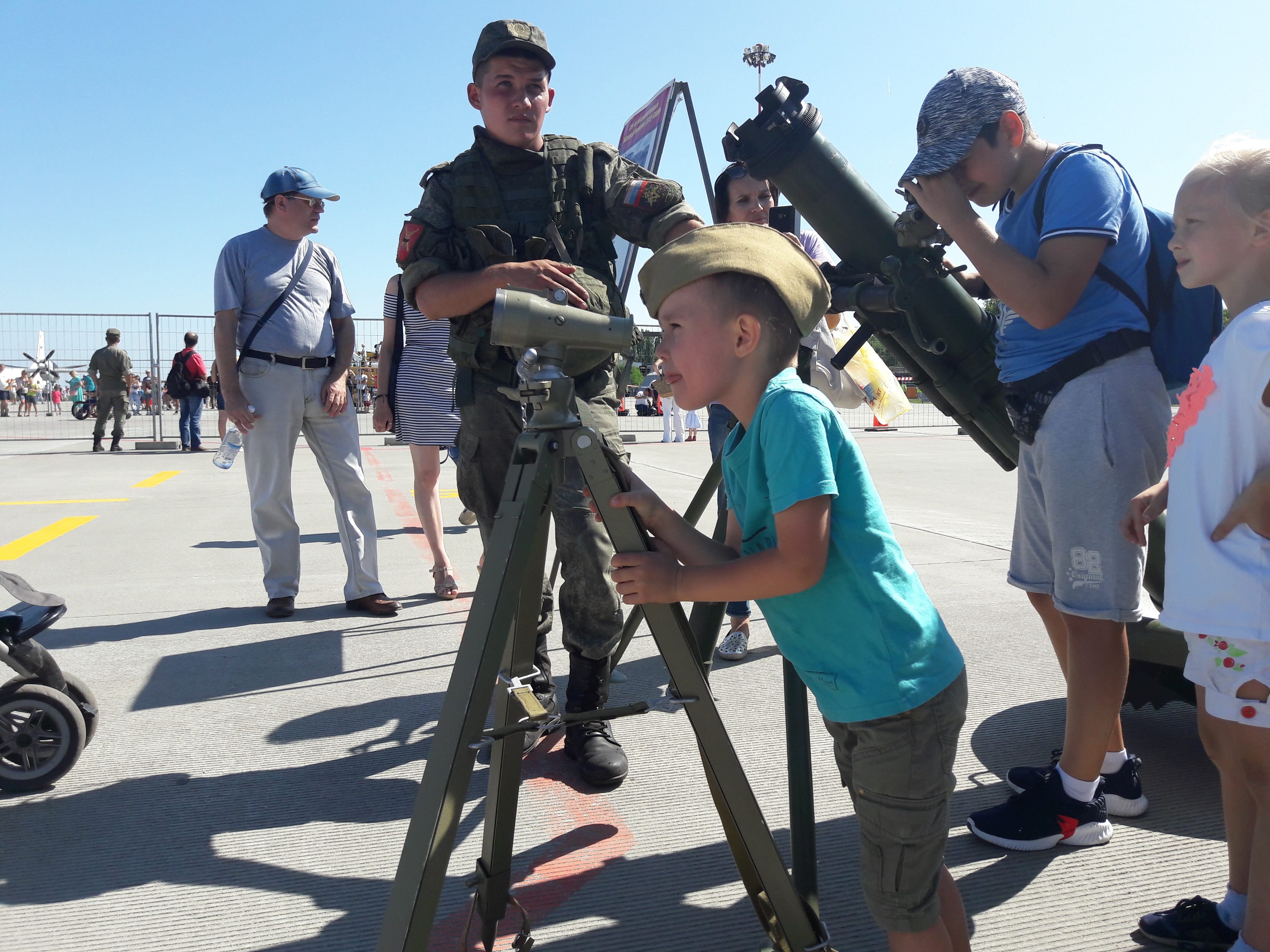 Интерактивные площадки с образцами вооружения и приёмов рукопашного боя Министерства обороны РФ или показом оборудования Воронежского областного клинического центра медицины катастроф сменялись жёстким рёвом моторов на показательных выступлениях каскадёров мотоклуба STUNT-PRO на мотоциклах и квадроциклах. Свою спецтехнику детворе здесь предоставили международный аэропорт Воронеж имени Петра I, Главное управление МЧС России по Воронежской области и авиакомпании: «Аэрострой», «Эйр экспресс», «Панх» и Холдинг «Молвест». Как же радовалась детвора и взрослые, когда под испепеляющим солнцем спасатели устроили неожиданный фонтан из брандспойта! А концертное сопровождение всему празднику осуществляли: оркестр ВИПС (филиала) Академии ФСО России и народный ансамбль песни и танца «Чернозёмочка» имени В.В. Соломахина.