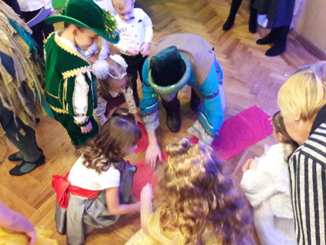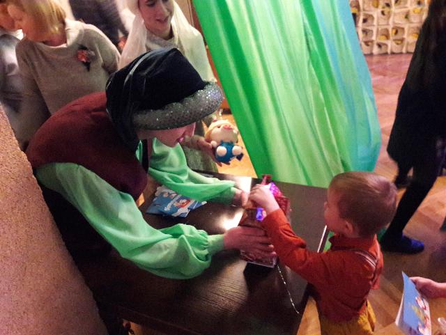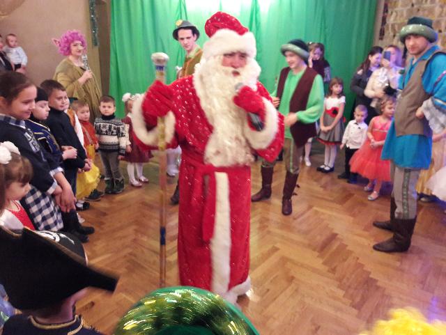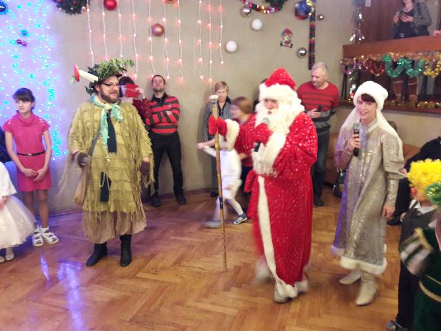 Но сначала весёлые скоморохи пригласили юных зрителей поводить хоровод возле ёлочки. Затем к ним присоединились по-настоящему сказочные персонажи: Леший и Кикимора, ну и, как водится, Снегурочка с Дедом Морозом. Какие ж тут были игры и загадки, танцы и песни! Разумеется, со своей спецификой, театральным подтекстом – дело-то происходило в тёплом актёрском Доме. И, что называется, намоленные не одним талантливым поколением лицедеев стены диктовали… Дети с превеликим удовольствием играли, например, в игру-спектакль про пиратов и поочерёдно на скорость рисовали Деда Мороза.