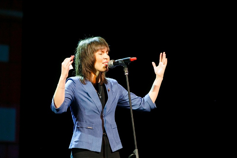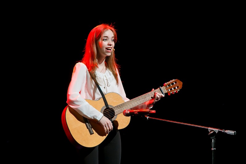 Самобытной и яркой оказалась и Екатерина Кьюсак, которая исполнила песню на языке жестов. Зал, не смолкая, аплодировал юной актрисе, обладающей поразительной способностью, не издавая и звука, эмоционально и чувственно передавать смысл и настроение композиции.