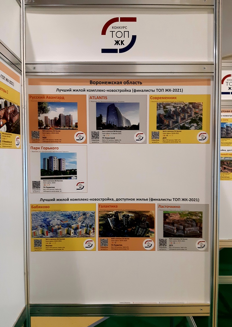 Достойно была представлена в том числе и Воронежская область. Домостроительный комбинат стал финалистом сразу в трех номинациях: «Лучший жилой комплекс-новостройка в Российской Федерации – дома повышенной этажности» («Европейский»), «Лучший ЖК» («Современник») и «Доступное жилье» (ЖК «Ласточкино»). ЖК «Европейский» на ул. Станкевича удостоился третьего места в своей номинации среди новостроек всей России. А ЖК «Современник» стал лучшим в номинации по ЦФО.