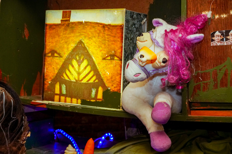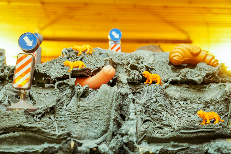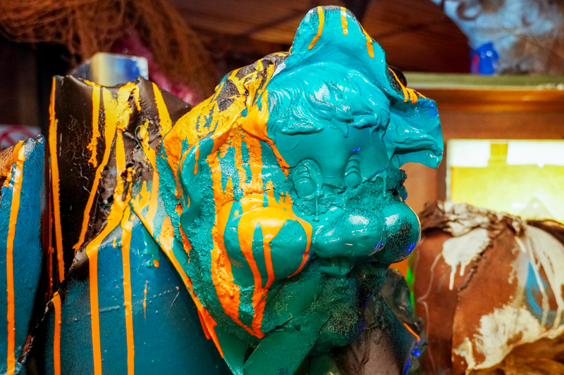 Экспозиция «Утопия драконов» – не просто об окружающей нас действительности, а о том, чем наполнено наше зрение. Все игрушки и находки, в нее вошедшие, со слов Ивана Горшкова, символизируют сумбур и хаос, вырванный из привычного контекста и помещенный в несвойственную среду.