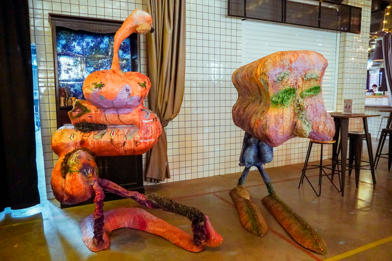 Формат такого художественного высказывания определяется как site-specifiс, суть которого – в адаптации скульптур к специфике места. Гастромаркет, бар и прилегающие к ним территории уже имеют свою природу, атмосферу и контекст, а потому задача встроить сюда «звучащее в унисон» – не самая простая задача.