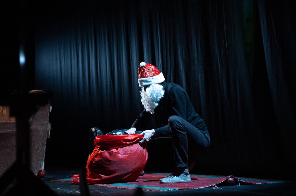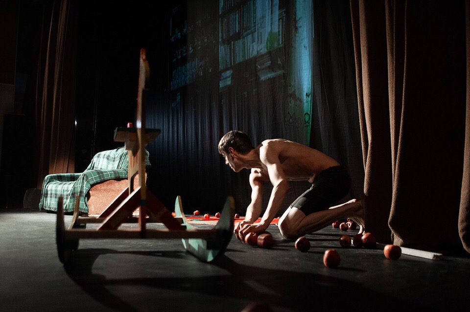Уютный диван с теплым пледом, в углу лошадка-качалка, изредка на стене появляется компьютерный монитор или старенький ковер времен СССР – обстановка в этой маленькой комнате, возникшей в пространстве сцены Дома актера, отсылает нас в наше детство. А актеры, что выходят к зрителю без каких бы то ни было масок, как будто превращаются в детей. В их рассказах – не только любовь к отцам, но и накопленные за все время обиды.