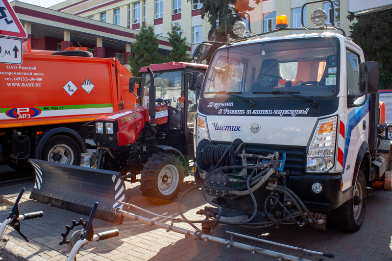 Чтобы продемонстрировать возможности утилизации и переработки ТКО, на Университетской площади была развернута выставка коммунальной техники: ультрасовременные мусоровозы, мусородробилка и мини-уборщики «Чистик».