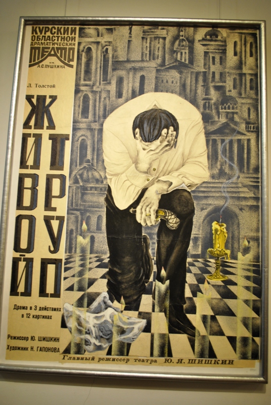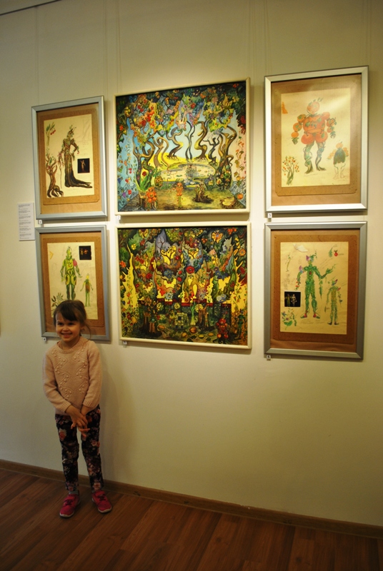 Здесь, среди 50 ее работ (а всего в дар музею в 2013 году Нина Гапонова передала 150 своих эскизов) – и сказочные замки к спектаклям для юных зрителей, и мрачные фигуры на афишах для постановок трагедий. И хотя все картины в рамах, фантазия, которая рождается при их просмотре, не имеет границ. Глядя на одни афиши и эскизы, непременно представляются сказочные персонажи, принцессы и какое-то чудо, что вот-вот должно произойти, а другие, напротив, – будто визуализируют страх.
