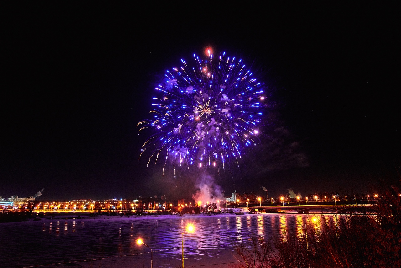 Участник группы «Типичный Воронеж» Саша Сячин опубликовал в социальной сети ряд фотографий воронежского салюта, который прогремел с дамбы Чернавского моста вчера, 23 февраля.