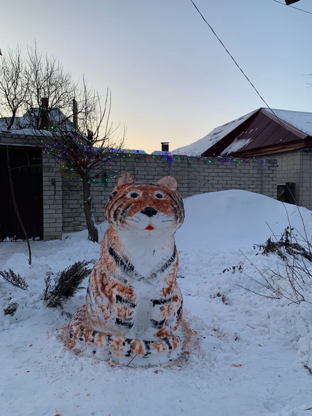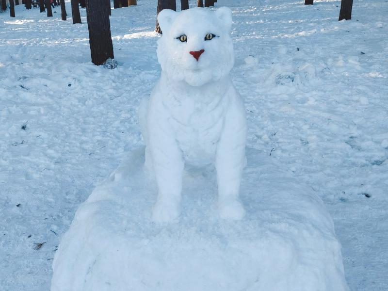 А в парке «Дельфин» в первый день 2022 года появился снежный тигр. Символ года слепили две сестры – Ирина и Виктория Сысоевы, которые в прошлом году создали в парке снежных дельфинов.