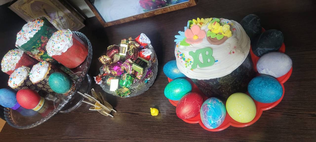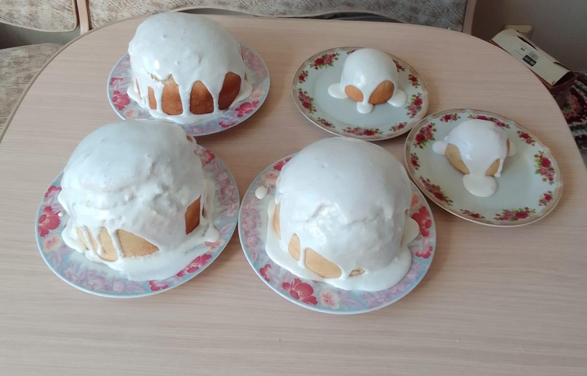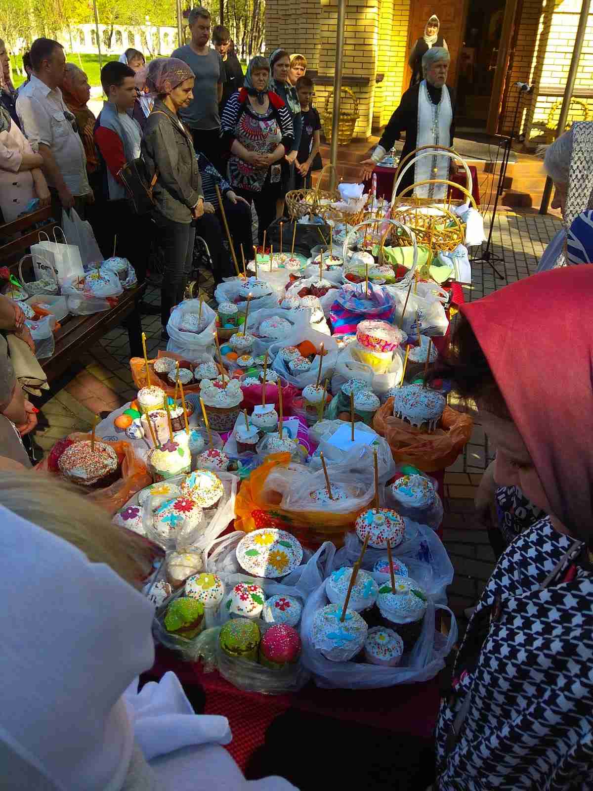 Прихожане терпеливо ожидали освящения своих куличей. Столы, уставленные пасхальной выпечкой, образовывали своеобразные ряды вокруг храмов.