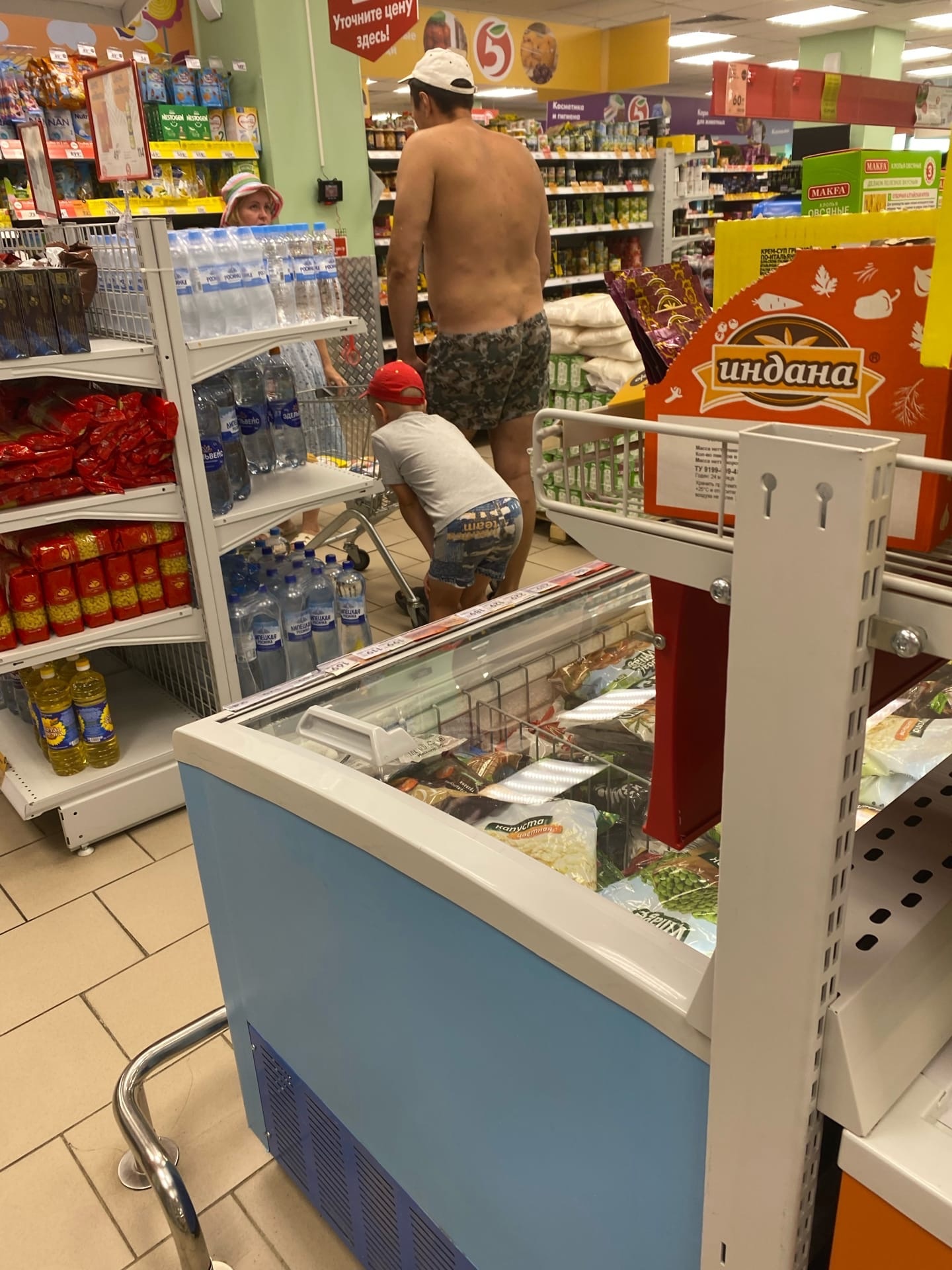 В самом деле, жаркая погода – не повод, чтобы появляться в публичных местах в таком виде, в котором и дома-то ходят далеко не все. Да и продуктовый магазин – место, где принято требовать соблюдения элементарных правил гигиены.