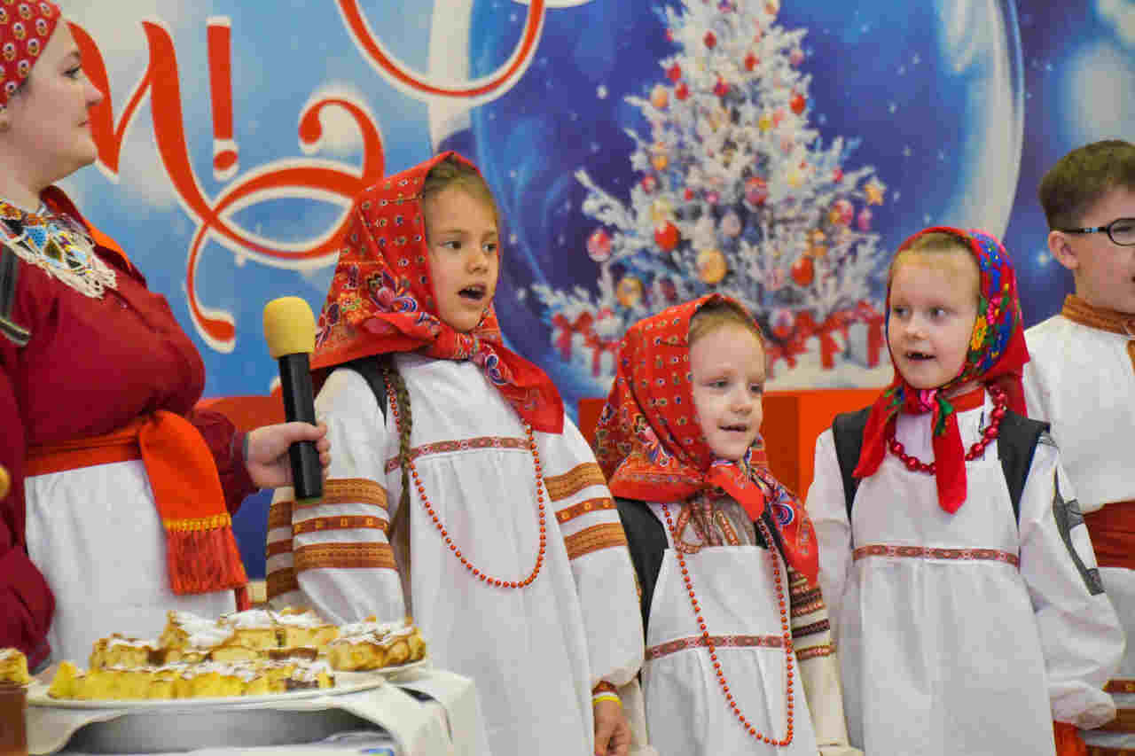 В свою очередь воспитанники школы поздравили всех присутствующих музыкальным подарком. Ребята подготовили театрализованную постановку «Веселые Святки» – пели шутливые колядки, хороводные и плясовые, загадывали забавные загадки, угощали гостей вкусным домашним пирогом.