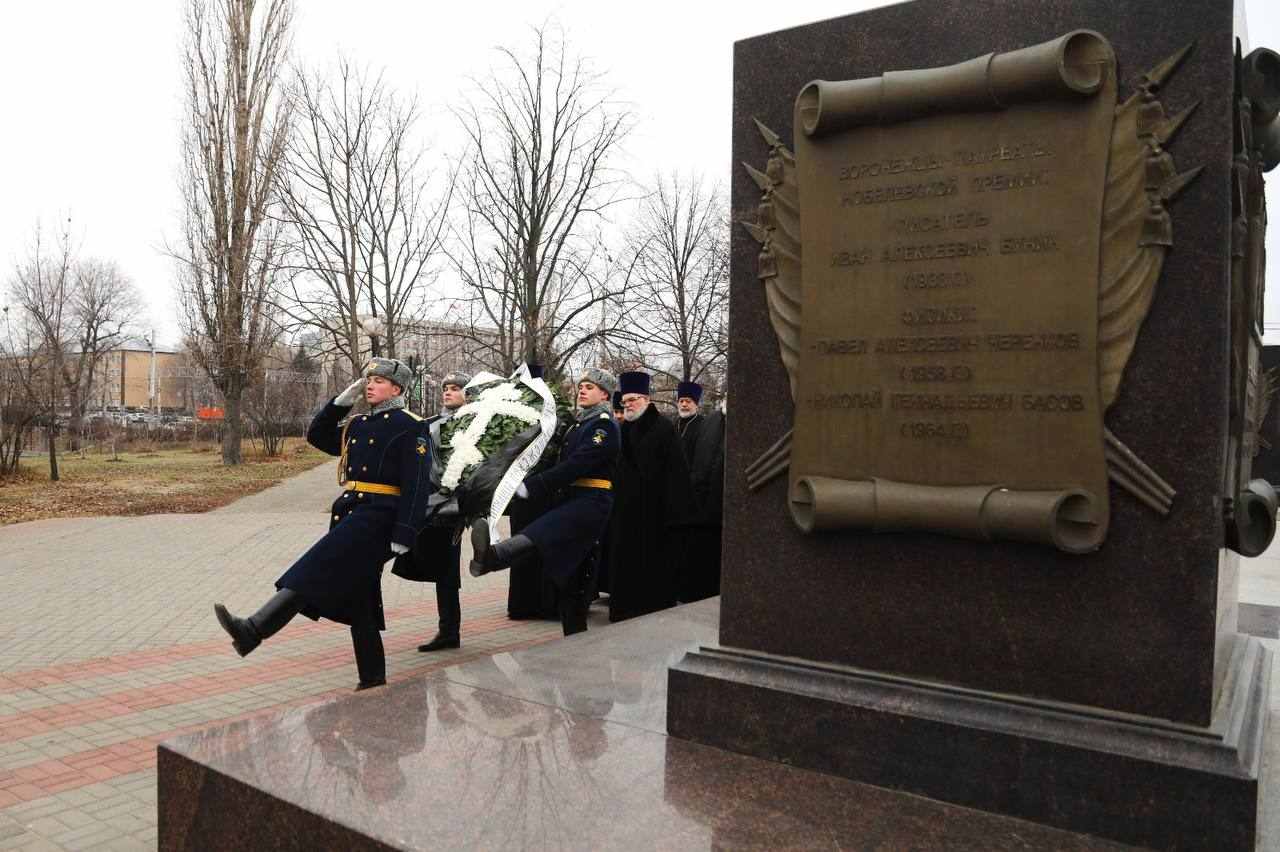В завершение церемонии священнослужители Воронежской митрополии провели траурную панихиду. Затем под звуки гимна России в исполнении оркестра Военно-воздушной академии имени профессора Николая Жуковского и Юрия Гагарина, рота почётного караула прошла торжественным маршем, сообщает пресс-служба городской администрации.