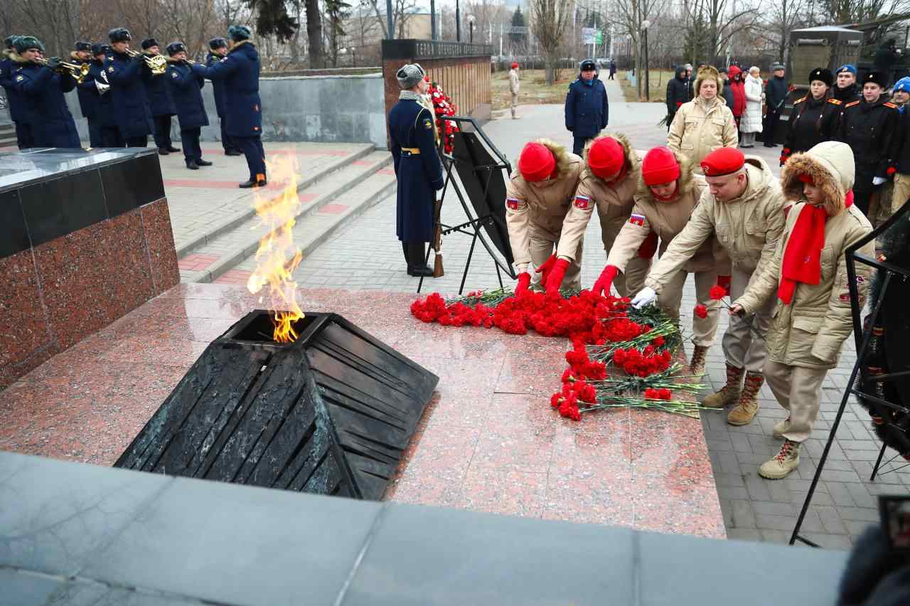 На мероприятии собрались представители органа власти и общественности, чтобы почтить память Героев Советского Союза и Российской Федерации, награждённых орденами Святого Георгия и Славы, а также всех павших защитников нашего Отечества. Возглавил колонну официальных делегаций губернатор Александр Гусев. Здесь были представители регионального правительства, областной и городской Думы, глава Воронежа Сергей Петрин, вице-спикер городского парламента Олег Черкасов, сотрудники правоохранительных ведомств, ветераны и молодёжные организации, духовенство, юнармейцы и другие.