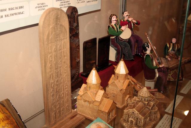 На выставке представлены объекты, внесенные в списки Всемирного наследия ЮНЕСКО стран СНГ: России, Армении, Белоруссии, Молдавии, Киргизии, Узбекистана. «Я выбрала феномены человеческого достояния», – признается организатор выставки, научный сотрудник библиотеки Р. И. Новичихина.