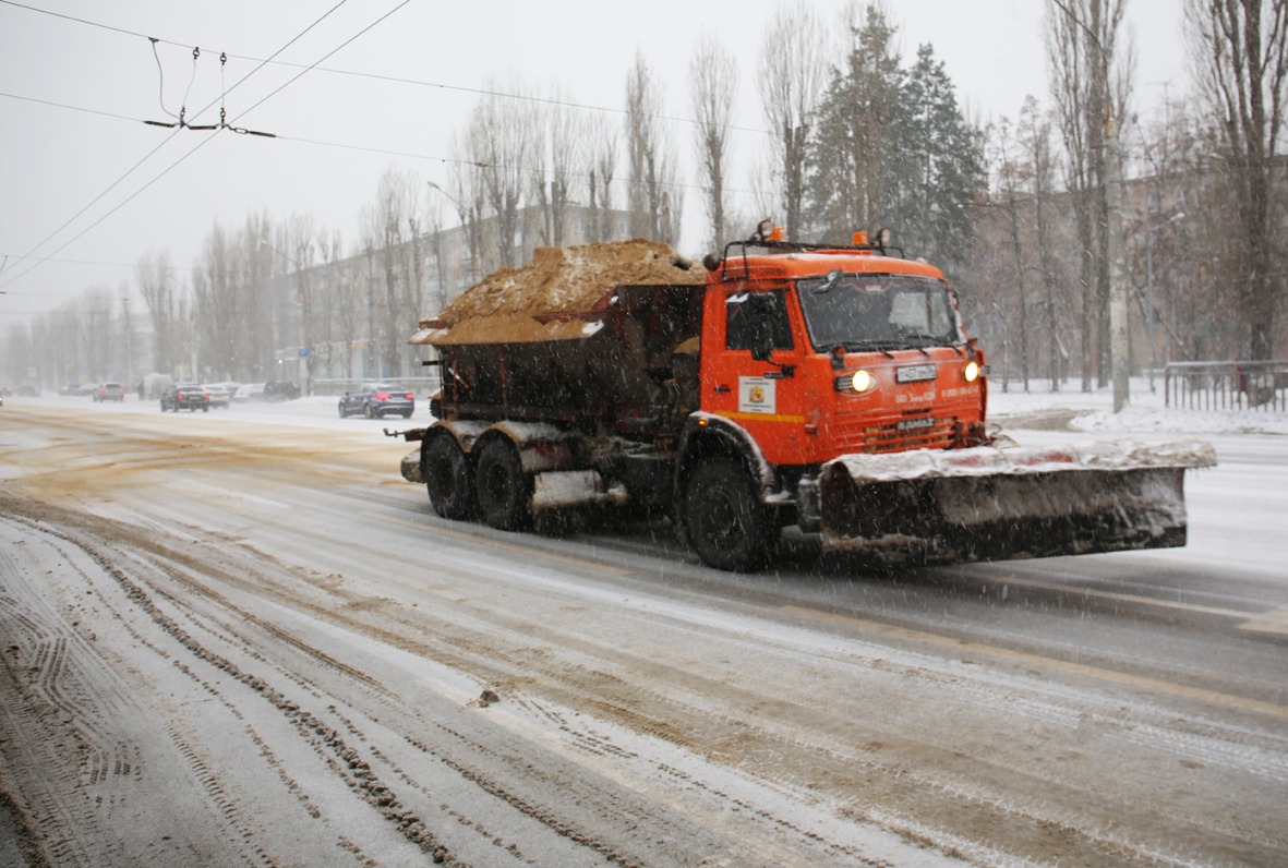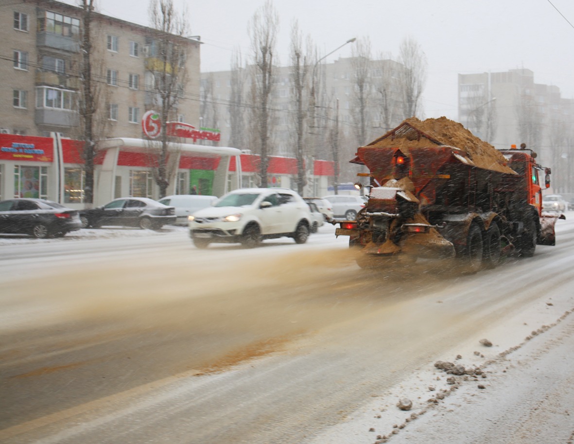 После того, как Воронеж накрыла сильнейшая метель, на улицы города вывели пятьдесят одну машину пескоразбрасывателей, главная задача которых – не допустить наката на проезжей части. Для этого производится сплошная обработка магистралей песко-соляной смесью, а после того, как она «сработает» (то есть превратит снег на дороге в снежную кашу), проводится подметание.